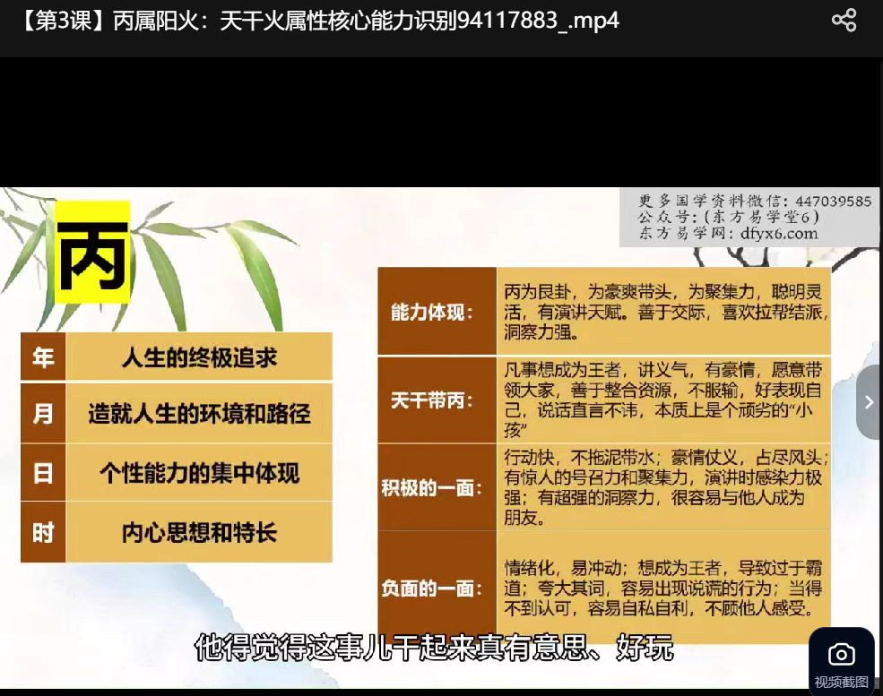 | ├──【第3课】丙属阳火:天干火属性核心能力识别.mp4 50.03M