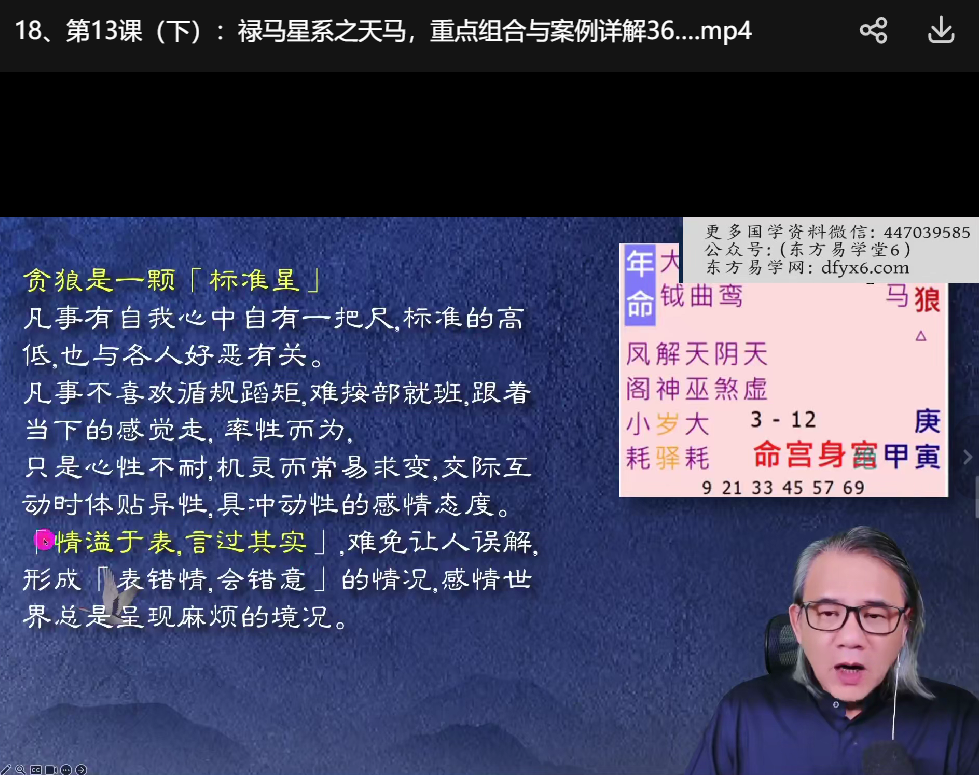 | ├──43、第37课:十四主星之天同(古文断诀及征验).mp4 718.89M