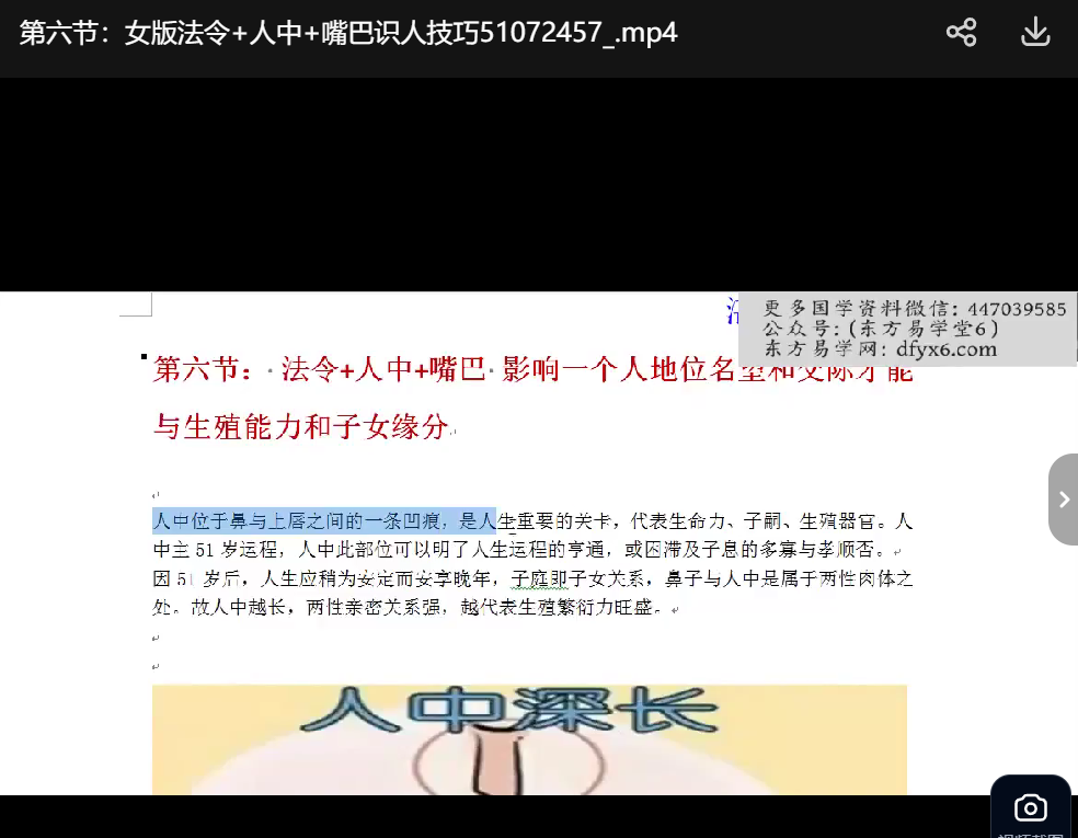 | | ├──第六节:女版法令+人中+嘴巴识人技巧.mp4 36.04M