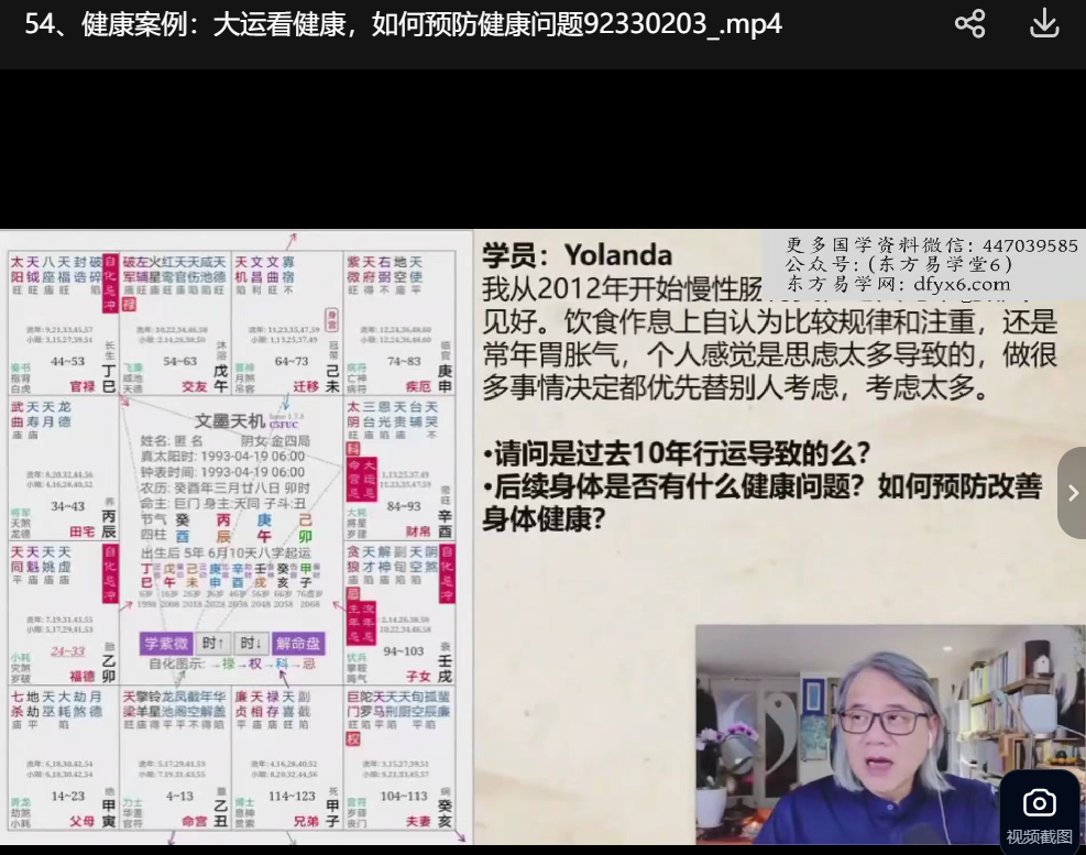 | ├──54、健康案例:大运看健康,如何预防健康问题.mp4 187.17M