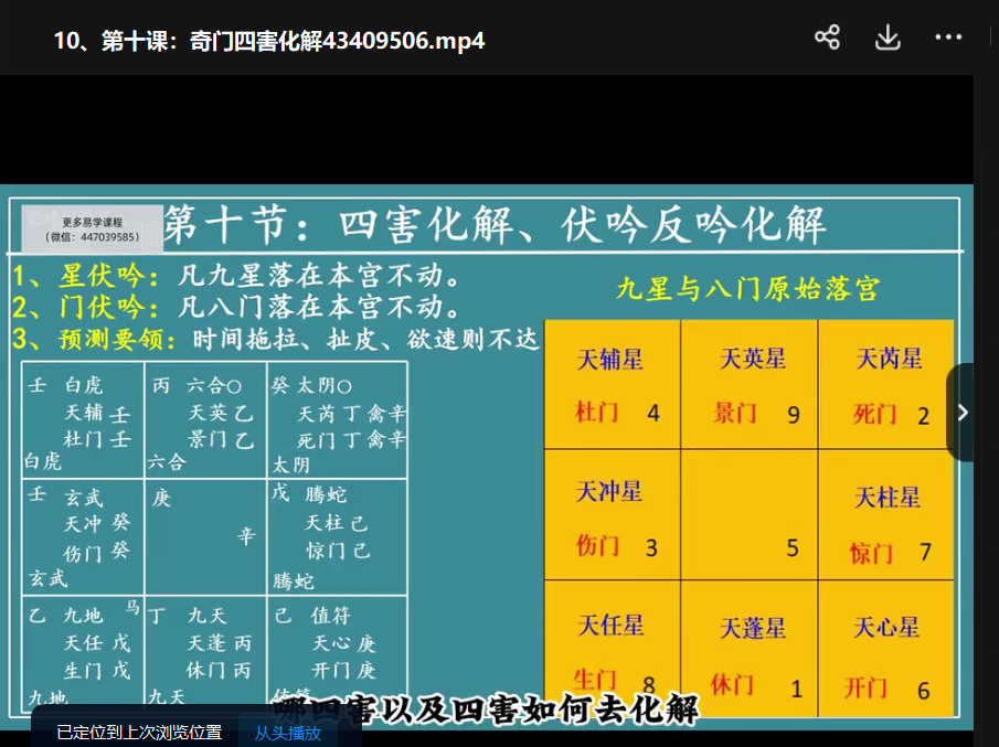 奇门遁甲四害化解运筹 视频10集,仔细了讲解化解的内容。虽然课程提示小白也能学习且快速应用,但建议还是先学一下奇门遁甲的基础知识点再来学习这个课程