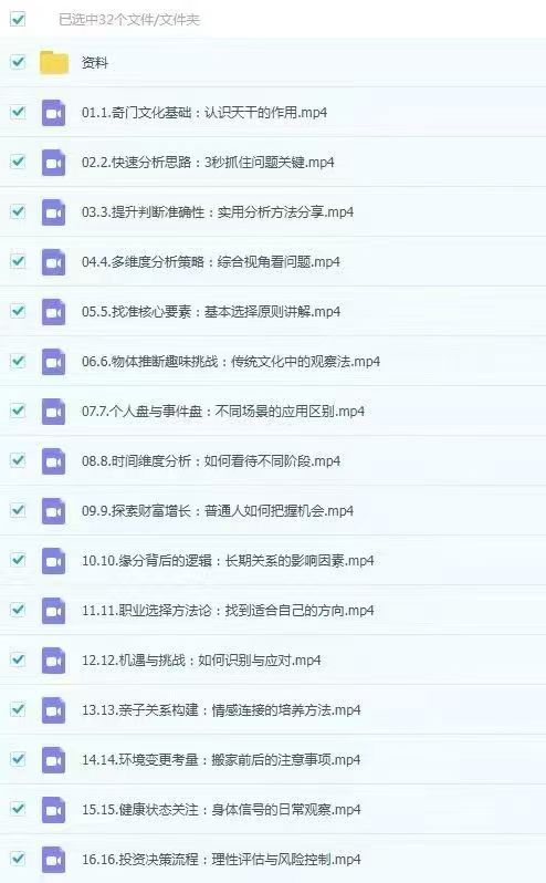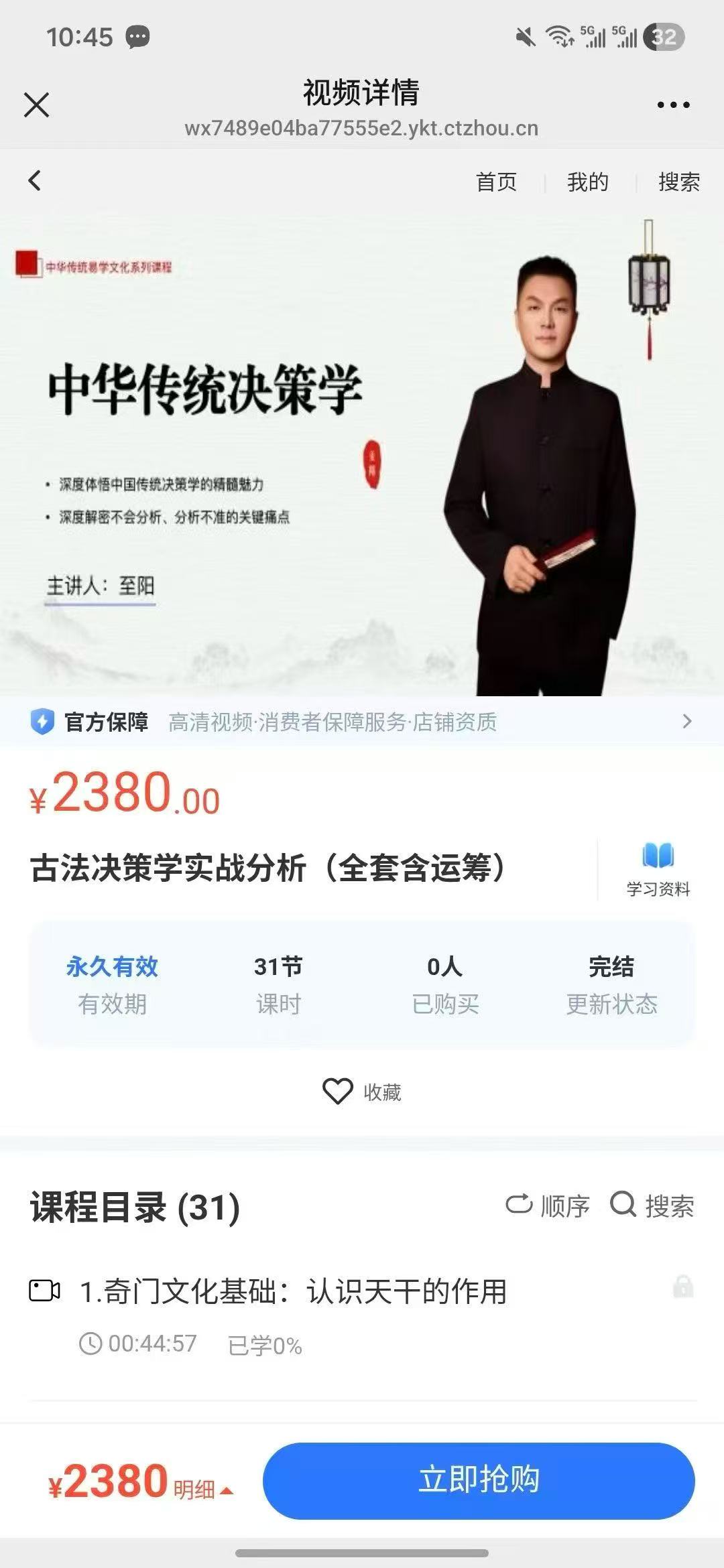 本课程更适合有一定易学基础的学生学习。对于想要深入理解何为决策学、决策学的现实应用的思路等有很大帮助。深度阐释什么是决策学,为何业内专业人士都将其称为“天干学”,揭示快速分析的原理,以及精准分析的原理和底层逻辑,帮助初学者、进阶者理清知识脉络,培养清晰的思维体系;揭秘选取用神的基本规则,明确终身盘与事盘的区别和用法。此基础增强课程能够帮助更多爱好者强化断盘能力,为灵活解盘和精准运筹奠定基础。深度解决:不敢分析,不会分析,不会下断语,思维混乱等常见问题。