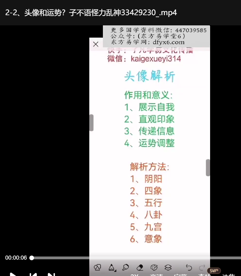 了凡学易 头像解析视频课19集,盖头像禁忌、类别特点、八卦类象、阴阳判断、案例分析及旺运头像设置原理等内容。