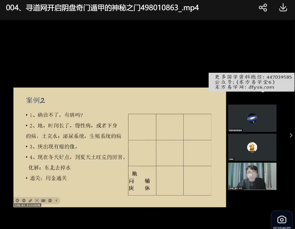 王里碧 开启【阴盘奇门遁甲】的神秘之门视频6集,寻道网王里碧讲解阴盘奇门遁甲的一些用法。