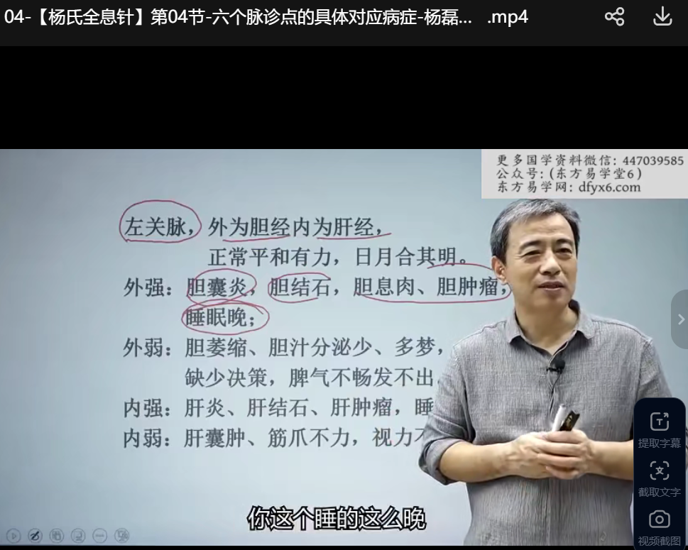 | ├──04-【杨氏全息针】第04节-六个脉诊点的具体对应病症-杨磊(字幕版).mp4 718.58M