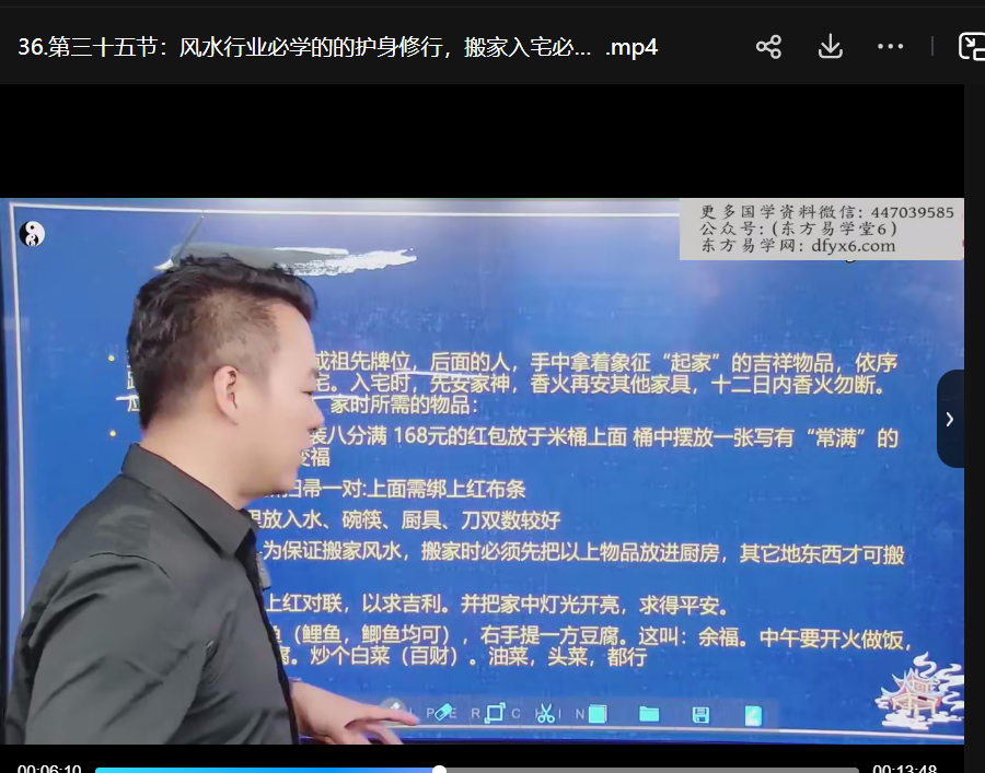 | ├──36.第三十五节:风水行业必学的的护身修行,搬家入宅必备秘法【入宅归火口诀】,预鉴【大师班】核心内容分享.mp4 119.49M