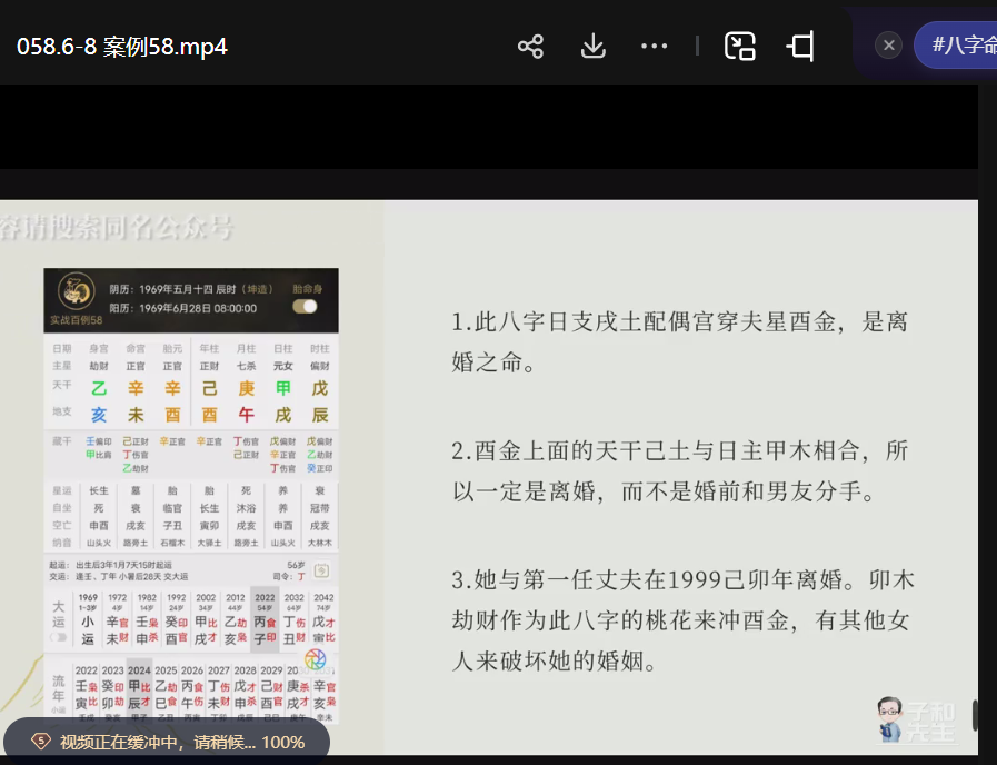 子和先生 八字案例100讲 视频课 ,每节一个案例详解,不可多得的好资料.