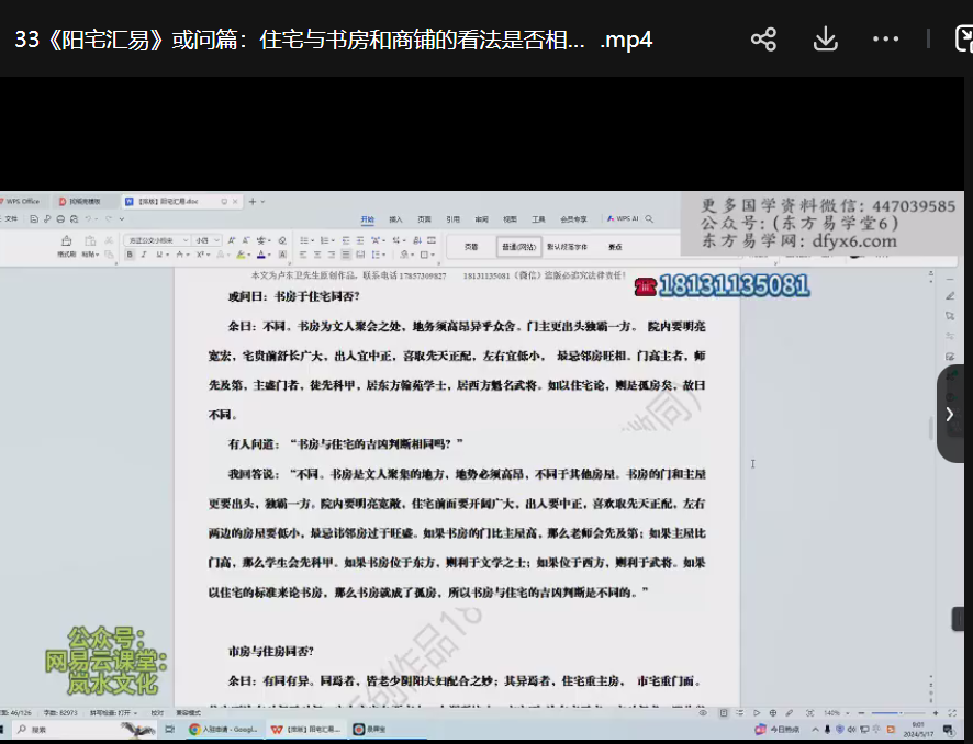 卢东卫大师评《阳宅汇易》58集讲解视频,八宅风水的详细断法讲解,含古籍里的一些论断,不是简单学几个方位组合吉凶。