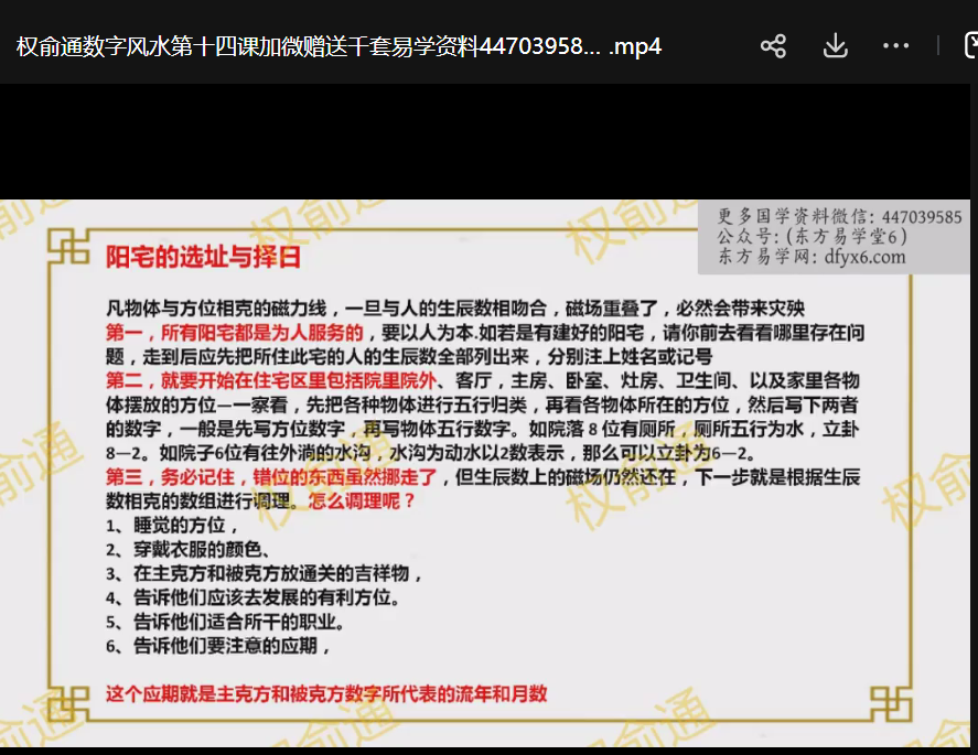 权俞通生肖神数与风水研修班 50集(东方易学)
