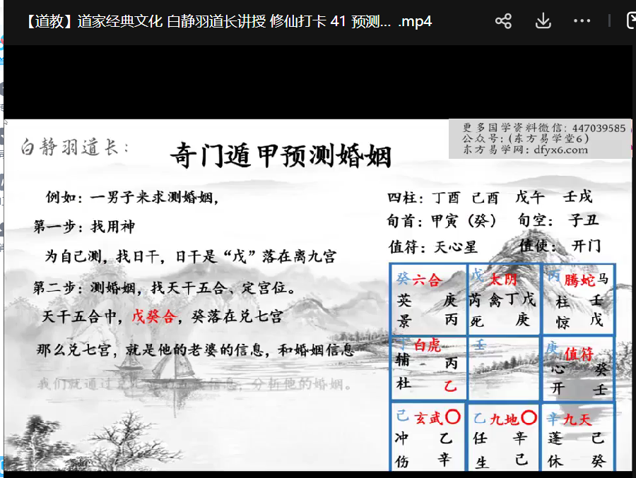 白静羽《奇门遁甲》53集视频,讲解的是转盘奇门,阳盘。道家特色是准确,快速。