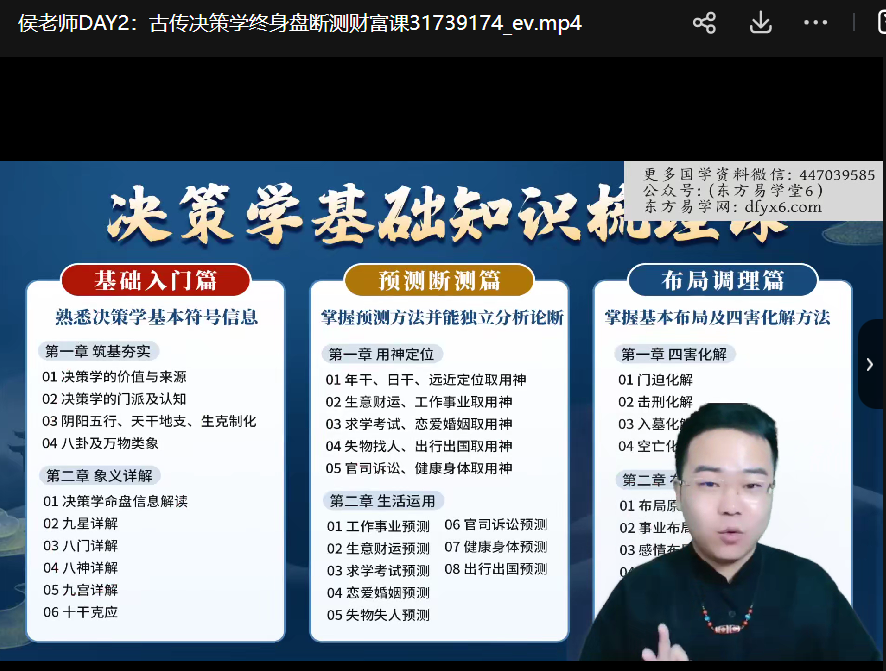侯宗元古传决策学运筹实战视频5集,讲解通过奇门遁甲和风水进行调整布局,达到运筹的效果。