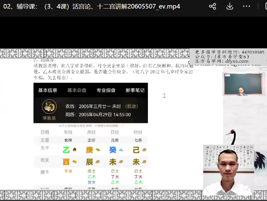 | | ├──08、辅导课:(15、16课)紫微斗数与八字知识答疑.mp4 240.04M