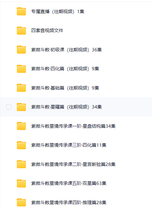 仲易紫微斗数星境传承课总共253集视频,包含:星盘结构篇,双星篇,推理篇,四化篇,星宫断验篇,是目前仲易外流斗数课程最完整的一期。请自行查看下方目录,本套课程比较大,无损压缩后都有152G