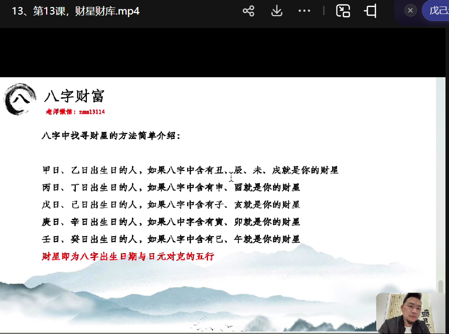 | ├──29、第29课,八字看财富.mp4 99.93M
