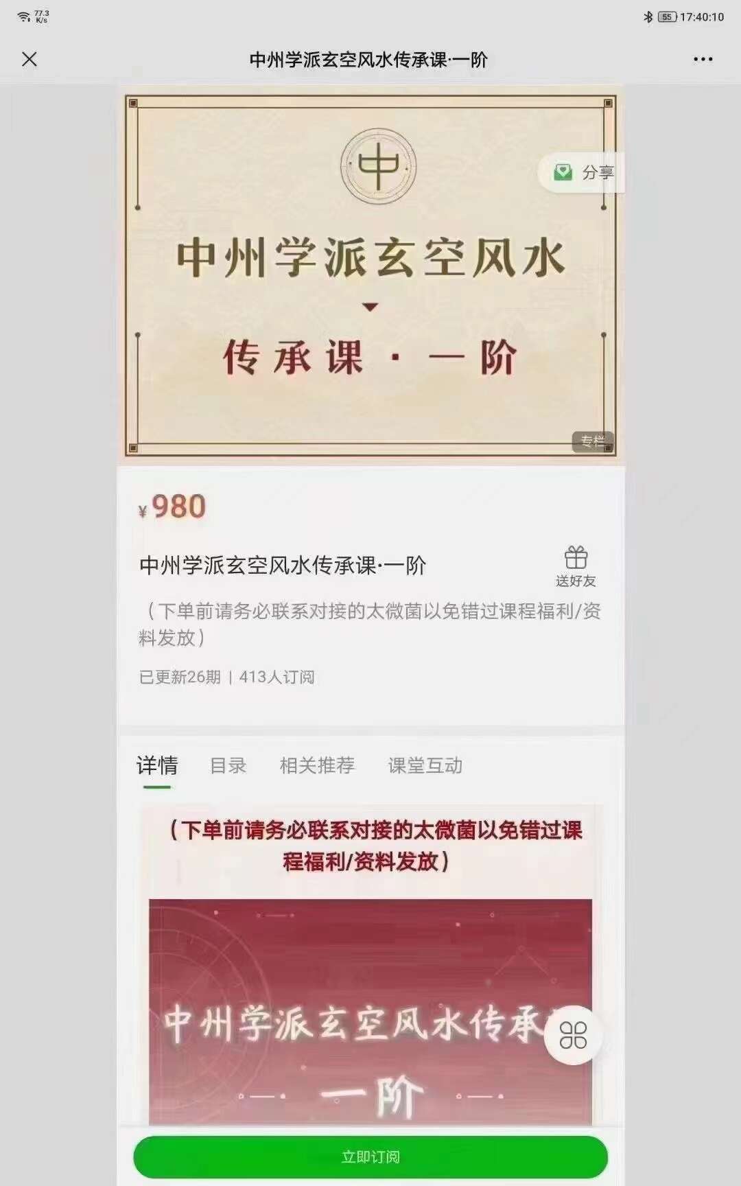 (推荐好课)陈仲易中州派玄空风水传承班一阶二阶。风水之道,世之风水师只知龙穴砂水向,而不知九星飞布,以夺三元九运旺山旺向之地运行气,虽龙真穴的,而葬之不发,以书云亦云,断章取意,害人损德,为祸不浅,玄空者: 以九星按河图洛书飞布,以元运入中,山向飞布,排成九宫,在天成象,在地成形,查其山与向之旺衰,三元不败之格局,以来龙为靠,以向水为照,配合地形,进行立向分金之法,儿孙世代昌盛荣华