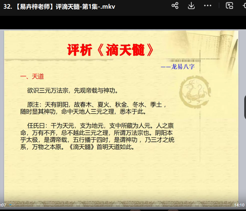 | ├──33. 【易卉梓老师】评滴天髓-第2集-.mkv 41.11M