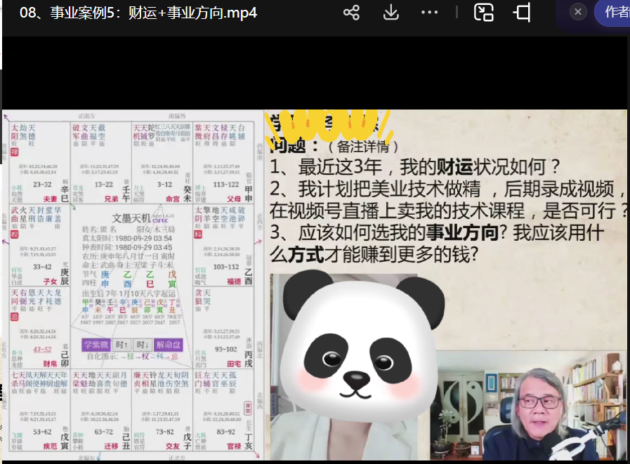 | ├──08、事业案例5:财运+事业方向.mp4 163.31M
