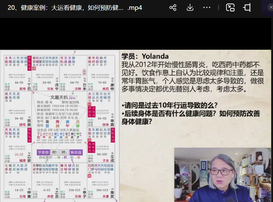 | ├──20、健康案例:大运看健康,如何预防健康问题.mp4 186.98M