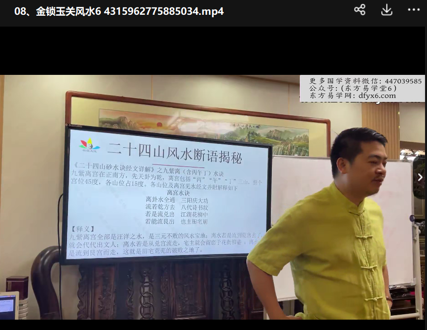 明樽《金锁玉关风水》14集视频,课程完整,并有八字流年指导讲解。