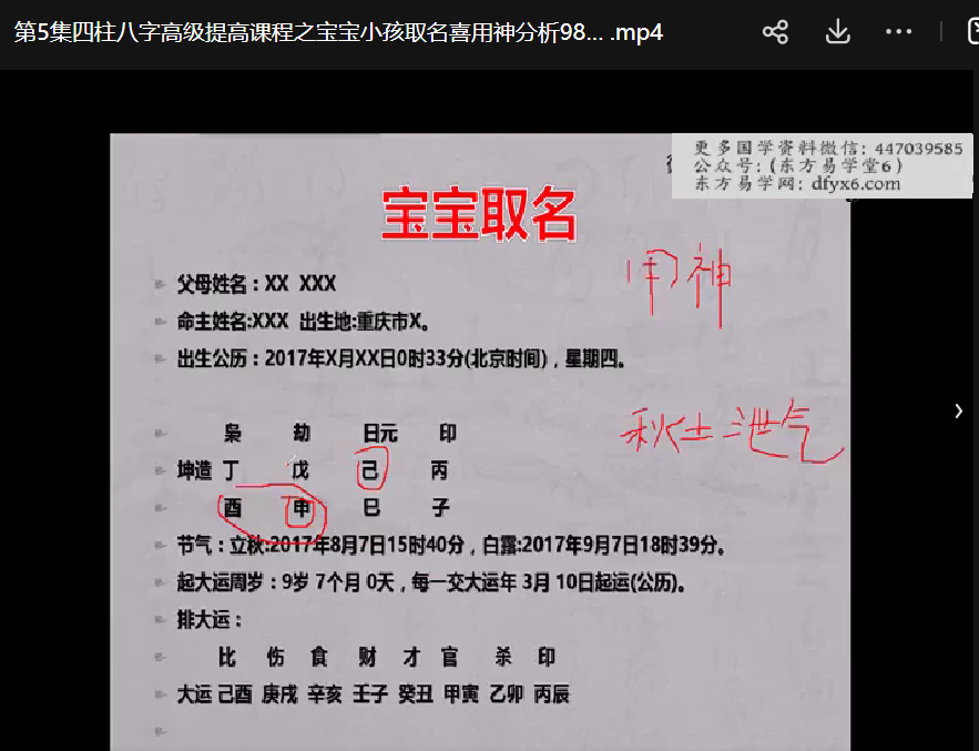 | ├──第5集四柱八字高级提高课程之宝宝小孩取名喜用神分析.mp4 9.97M