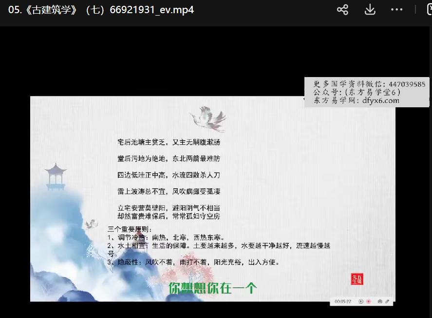 五伤先生|藏风纳水建筑学视频11集,讲解形峦阳宅风水,简单易懂,一些古诀的解读等