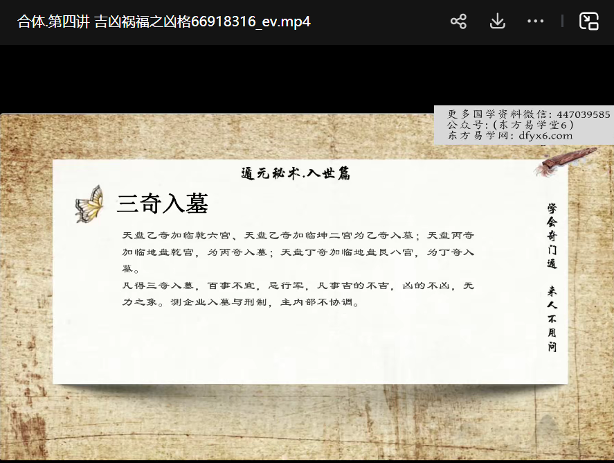 奇门中九的阳真经!最新门奇遁甲课程-遁元秘术22集视频,为阳盘奇门遁甲课程。