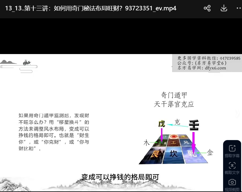 易云 奇门遁甲35集视频,0基础讲解转盘奇门遁甲的各种预测方法,并有大量的实战案例进行学习。从第一节到第十七节为连续实战内容,另有关于空亡、入墓、击刑等特定主题的单独讲解视频,非常值得易友入手这套。