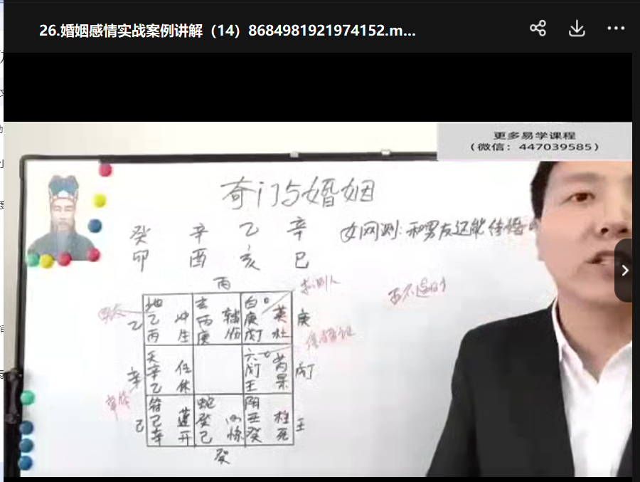 《奇门与婚姻专题课》视频30集。带字幕讲解,并有大量案例讲解。