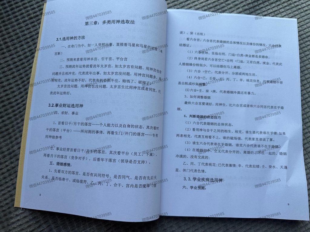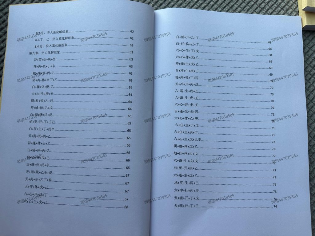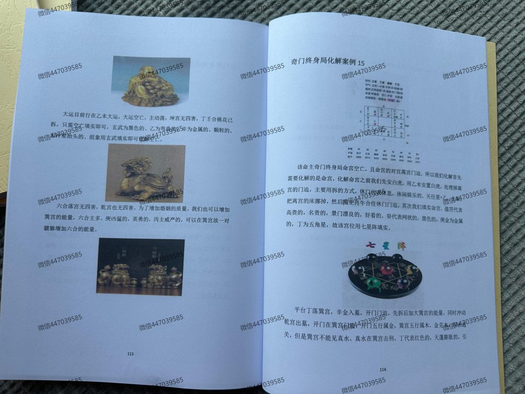第三本:阴盘奇门遁甲《象意组合与运筹化解》全书118页,奇门遁甲化解是依据“量子纠缠”原理,在天成象,在地成形,在人成运的易学原理,有形就有磁场,有磁场就有能量,从而通过量子纠缠原理打到我们身上,我们可以通过物像进行运筹调理。