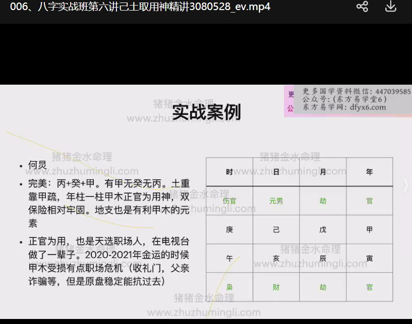 2025猪猪金水八字实战班视频15集,涵盖从甲木到癸水的取用神精讲,以及事业、财富、感情、健康、岁运引动等专题课。