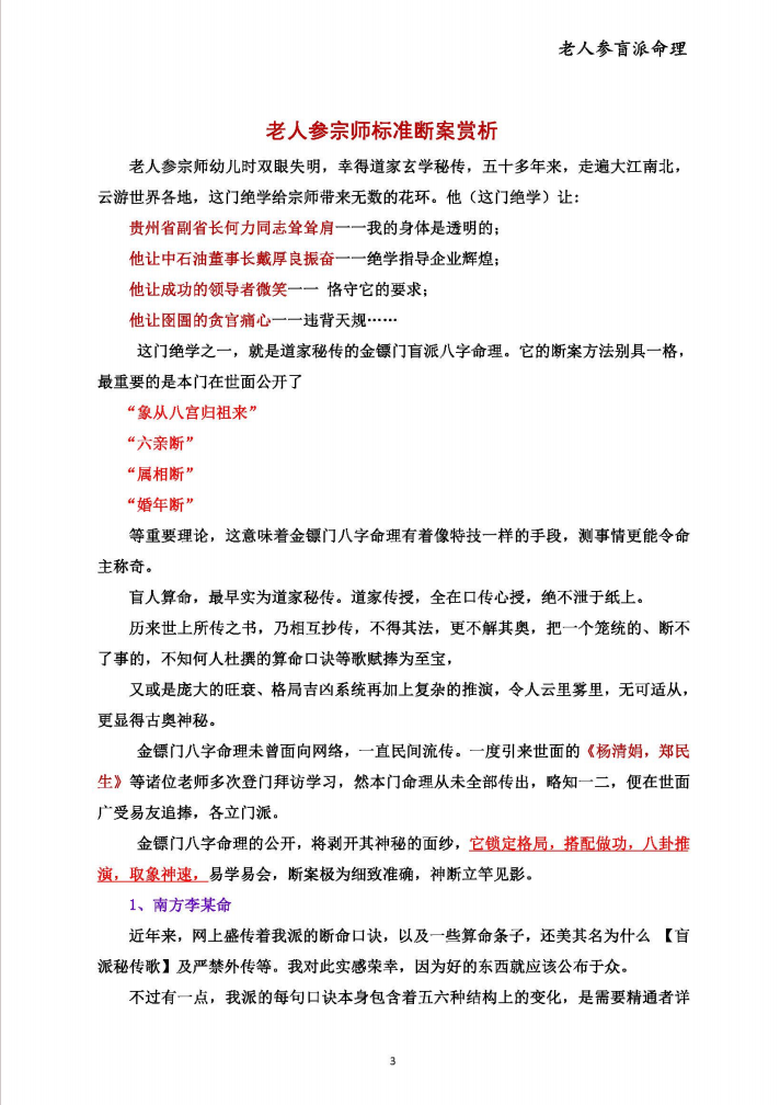 《金镖门盲派八字核心教材》 老人参/著,250页PDF电子版,是目前最好的盲派资料,里面大量精准案例参考