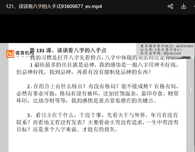 高德臣盲派八字:高级弟子班正课129集视频,涵盖八字流年、大运、命局关系、特殊规律、应期点窍及特殊职业八字命理研究等,内容比较多,不负高级弟子班的名称,实用性很强。