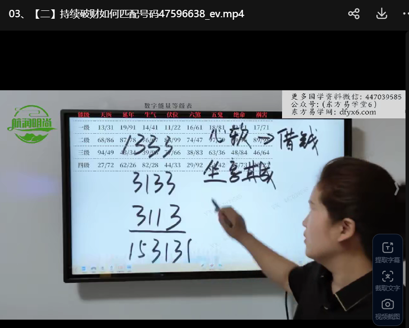 | ├──03、【二】持续破财如何匹配号码.mp4 201.99M