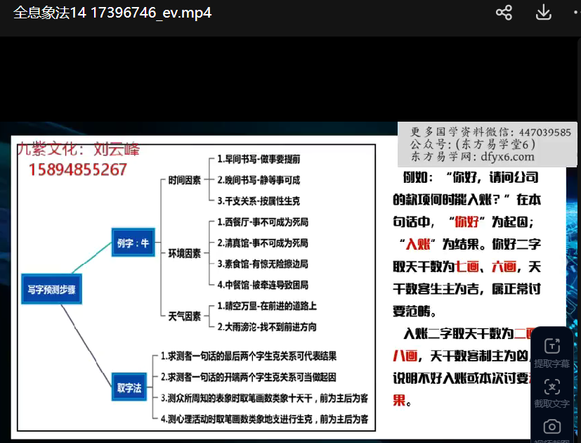刘云峰全息象法视频课14集,以拆字,看图定象等为主,其实还是属于在梅花易数的范围内。