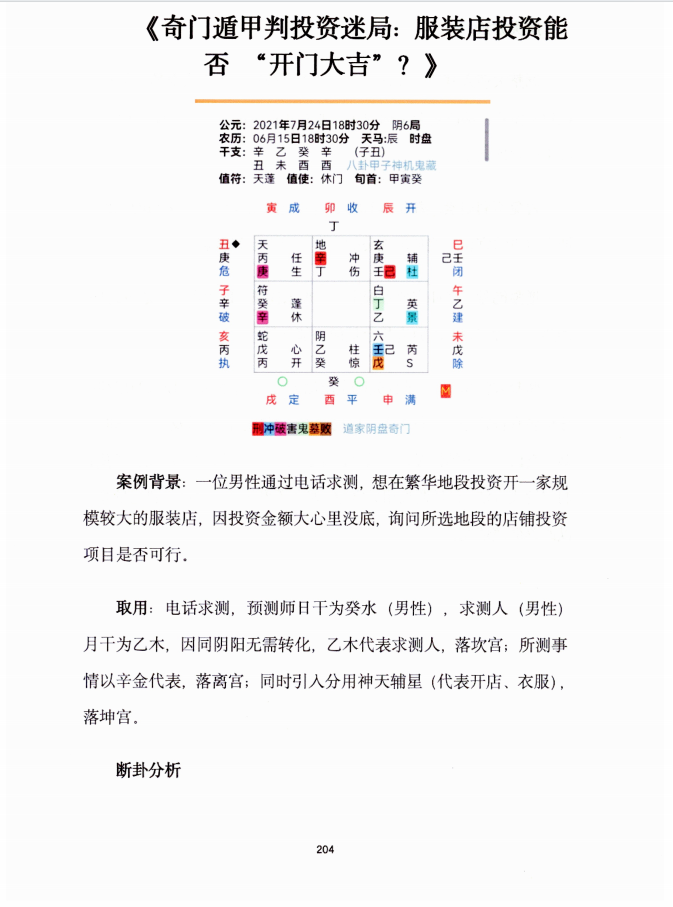 1.奇门遁甲解析商业投资