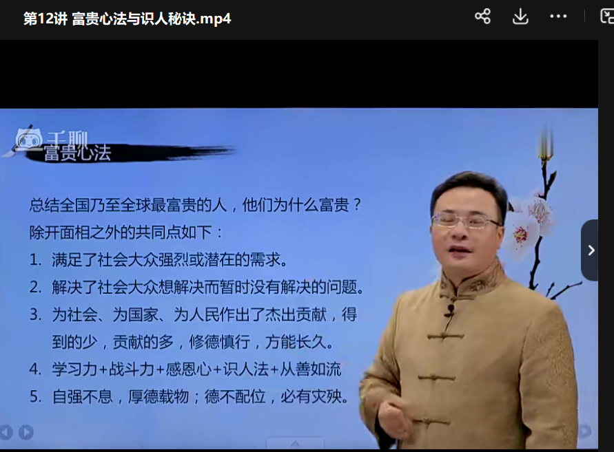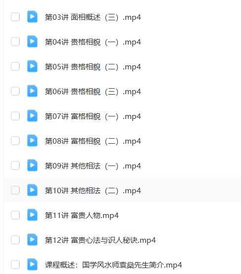 本课程详细绍介了全国56位一流尊贵的的人面相,还详细介绍了历帝代王名相富及豪的面相介绍,以袁燊师大所总结的易面经相学理论核为心,逐一分析相面对人生命富运贵的作用、影响,结合实案际例,帮助学员解了识别人生贵富面相的原则、规律和方法,对企业或位单负责人、需要经常人和打交道以及位单招聘人员会有大很的帮助。这些资料搜整集理十分不易,细细品味,可让以人终生受益无穷。