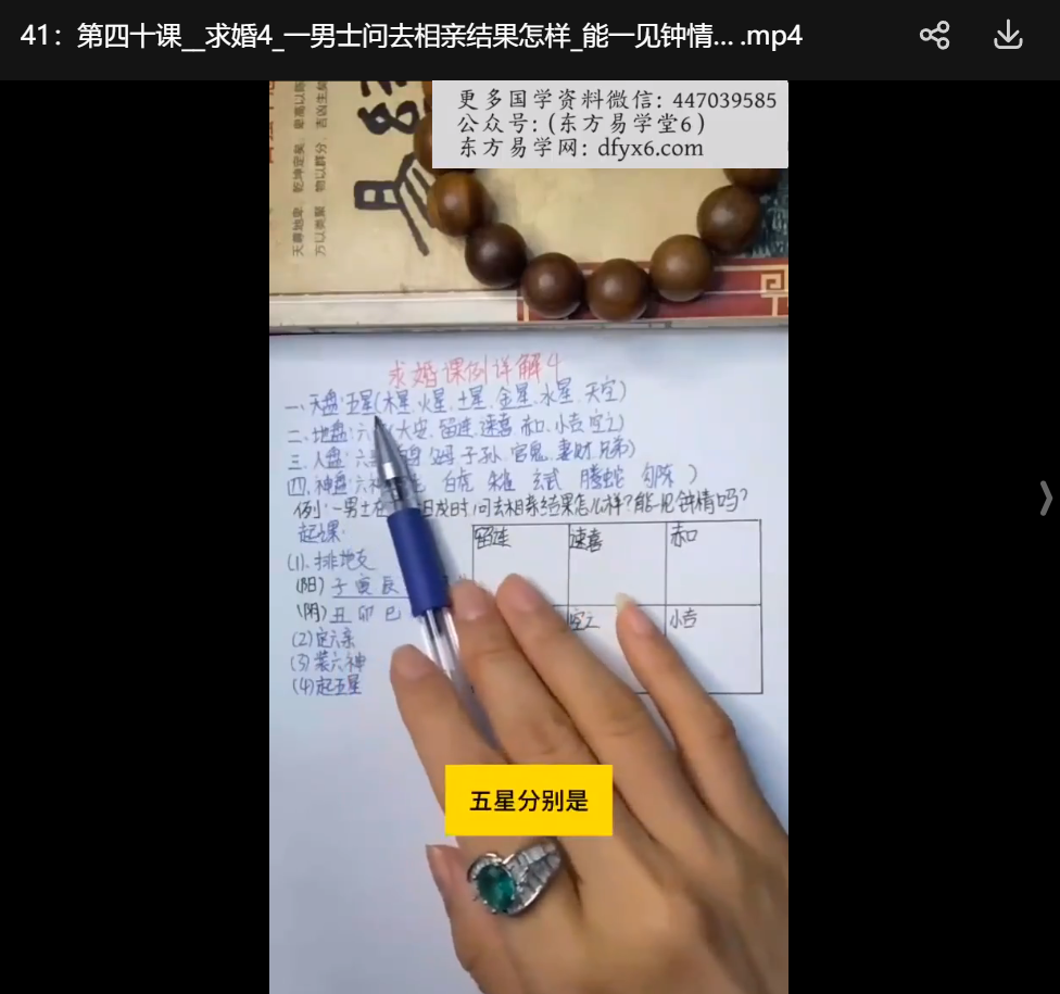吴老师【袖里乾坤小六壬】课程视频84集,目前为止我所见过的课程内容最详细的一套小六壬课程,涵盖课内取用、排盘、男女命盘分析、报数、抽签、汉字解卦、应期、吉凶方向、小人、天气、出行、考试等内容,案例较多,更容易领会。