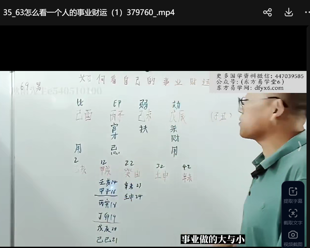 秋雨先生 都能学会 不懂就问我_36集四柱八字视频,带字幕讲解,涵盖八字分析、六亲定位、事业财运、学业分析、断语背诵及思考等内容,符合学习八字课程的循序渐进。没有基础部分,属于中级课程。