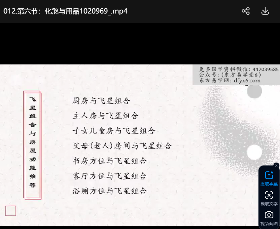 | ├──012.第六节:化煞与用品.mp4 107.37M
