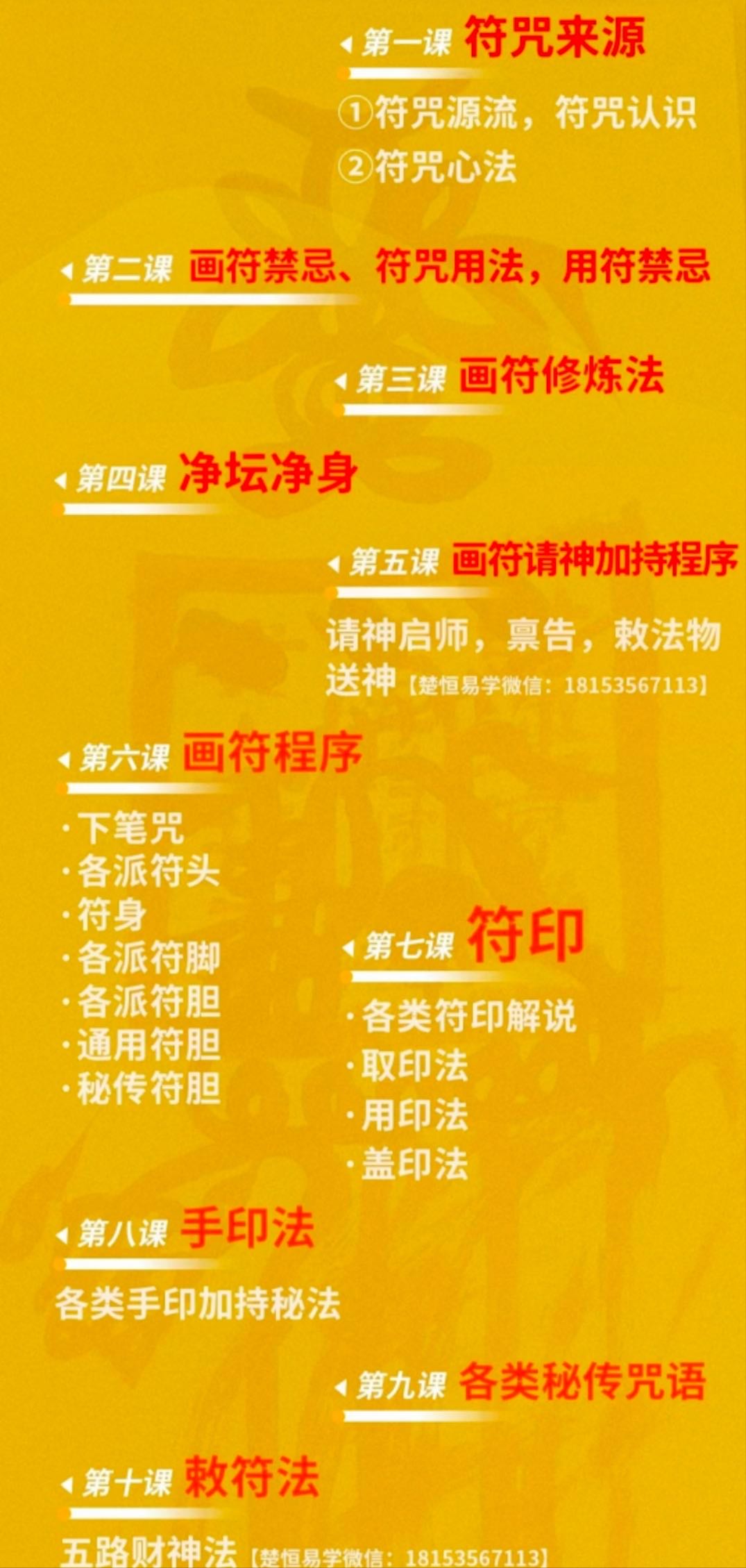 本课为道教正规符法课程,学会了这个课程,可以成为专业符法师,可以画市面上99%的南传符咒。