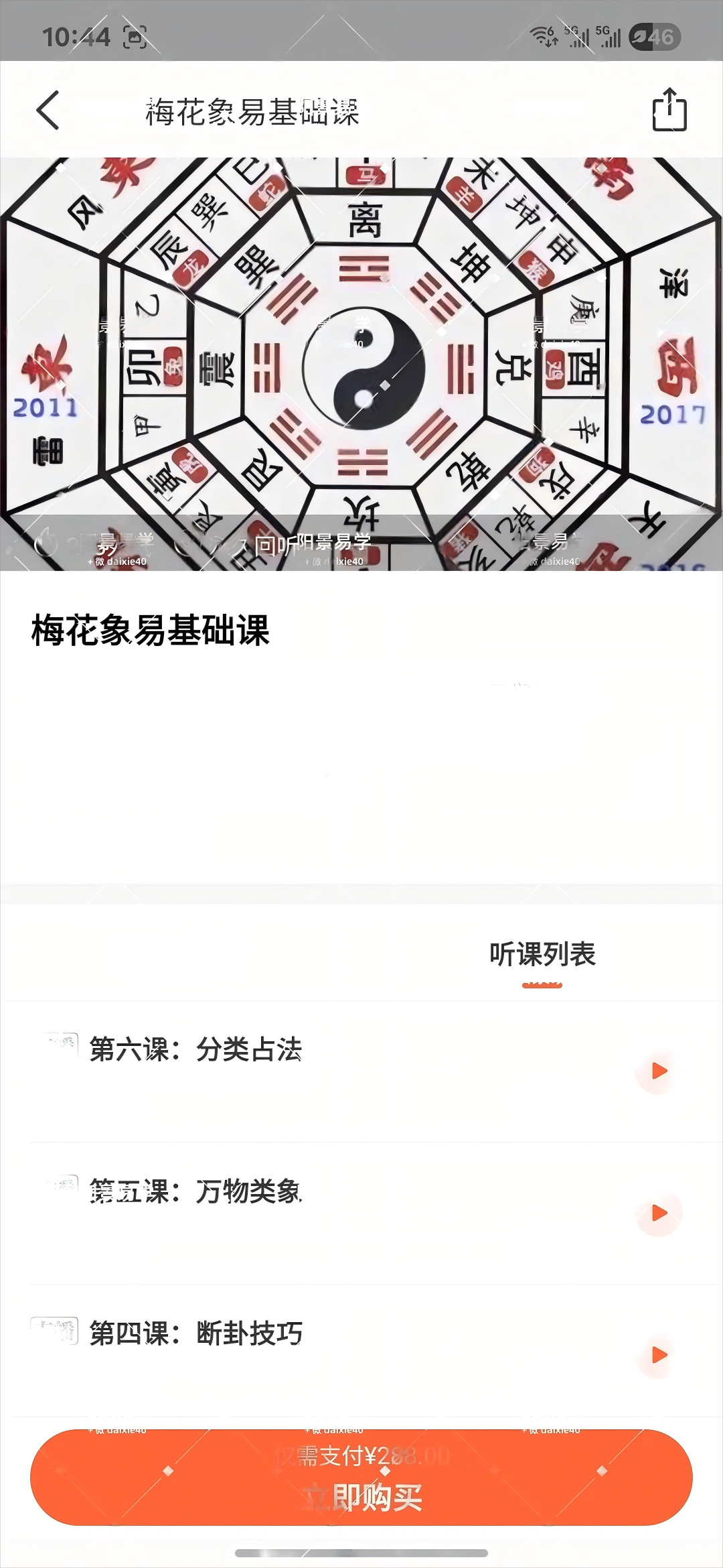 本课程讲师为实战派专业卦师,研易近三十年,在学习方法上颇有心得,教学具有其独到之处,带领大家从起卦入手,在实践中学习原理,提高大家兴趣,保持学习热情。而且课程会收集更多卦例,方便学员与老师在后期的学习中用于研究使用,以达到加强学习效果,提高学习效率的目的。此外本课老师还会特别传授三个占断心法,可以很大程度提高预测准确率,便于学员快速掌握梅花易数的独到技法。