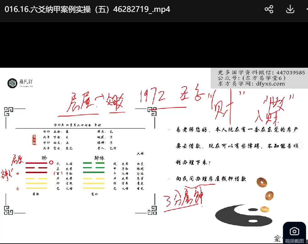 易凡轩 秋季班 六爻纳甲-【18节】视频,涵盖起卦方法、装卦法、六十四卦、案例实操及奇门演卦等18节内容。以较为简短直接的思路带你学会玩六爻断卦,并有案例实操拆解。