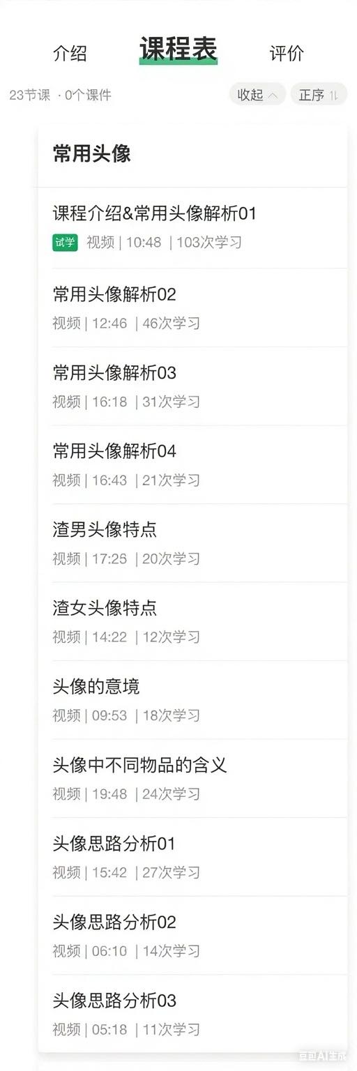 初阶内容:常用头像解析 快速分辨zha男zha女头像特点 头像的意境及物品的含义 头像思路分析