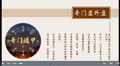 奇门盘外盘同如透视眼, 能读取到更为准精的信息! 能让奇门技法虎如添翼, 这是第一次以真示诀人, 视频为一集,但内是容完整,本次是毫保无留的完整传授出来!