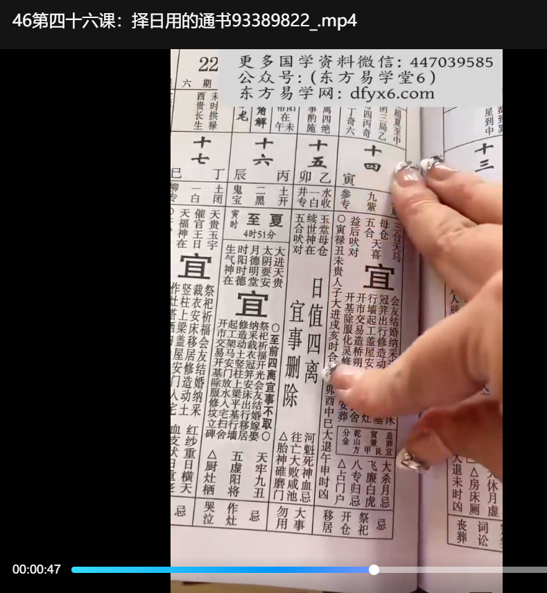 | ├──46第四十六课:择日用的通书.mp4 21.46M
