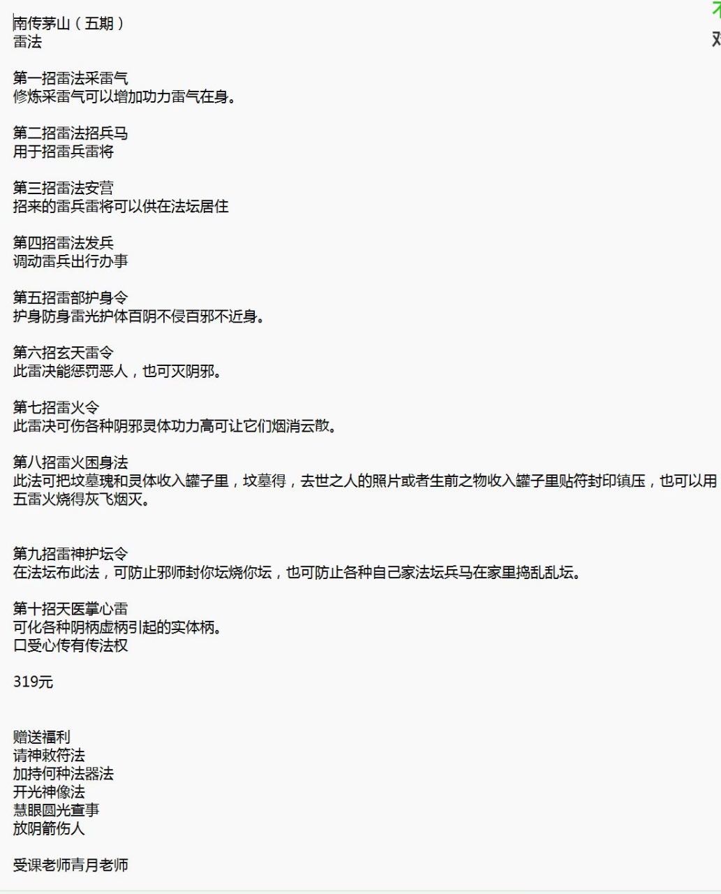 5、南传茅山法脉五期-雷法