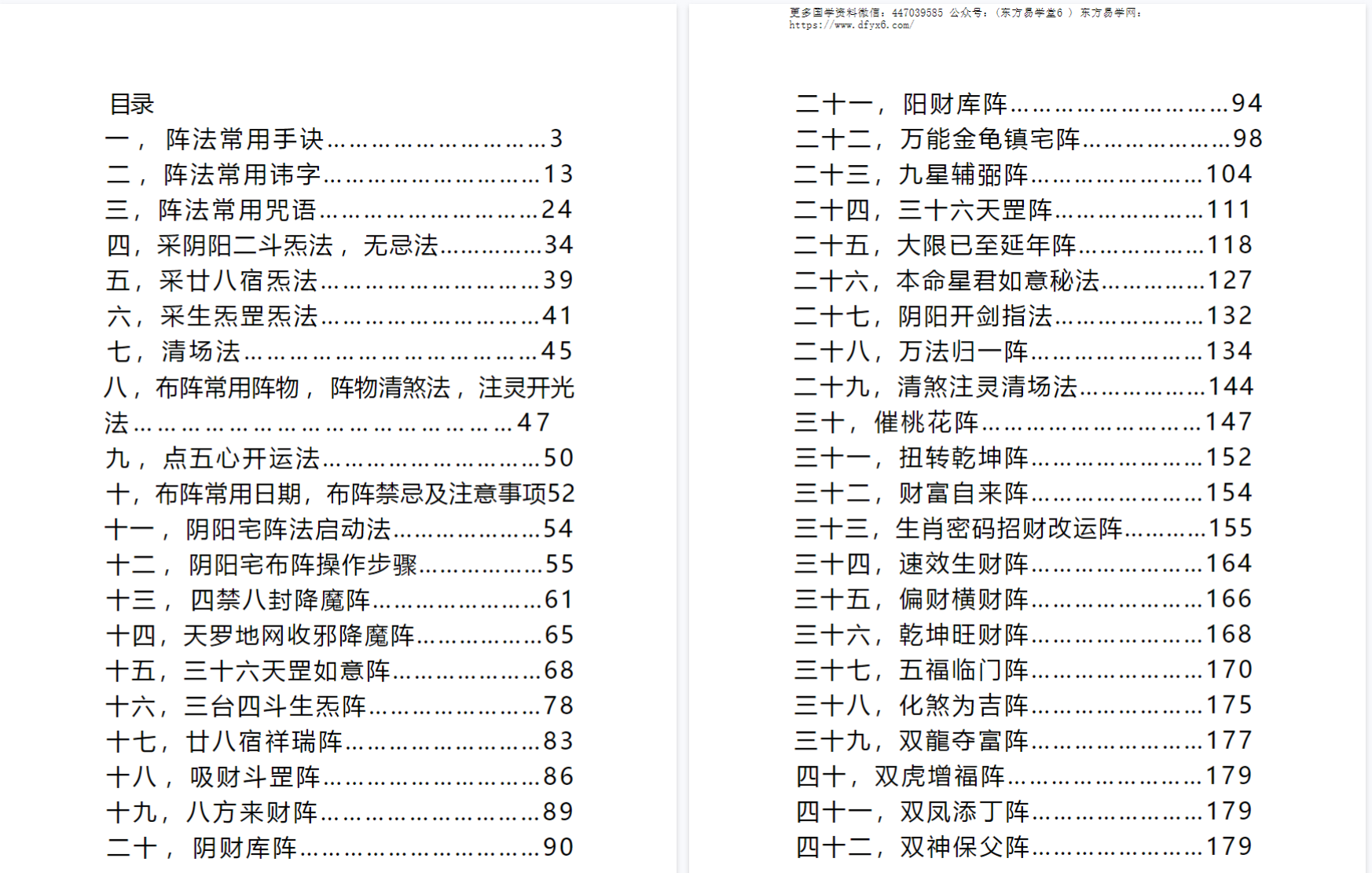 阴阳风水阵法.pdf 188页,详细讲解各种布阵的方法,但多数阵法均为招财来的阵法。