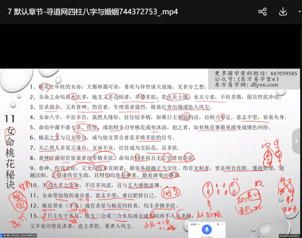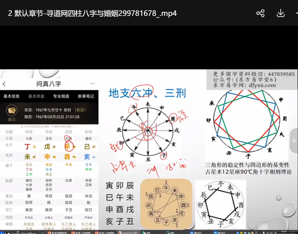 【朱万广】八字与婚姻视频9集,系统讲解八字中的婚姻信息解读。此套课程讲得不错,只是为了遮挡别的水印然后在右上角有一点点盖住了文字,但是不影响学习,介意勿拍