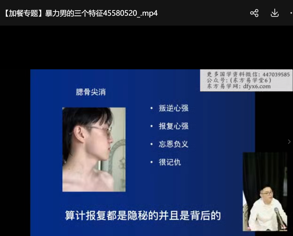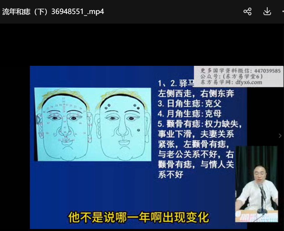 李道澄沈贵成识人辨人课视频24集,通过面部各部位的辨识,教你怎么去看人的各种信息。