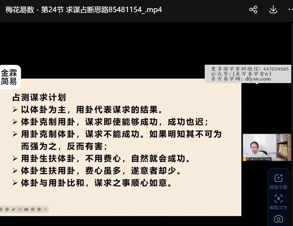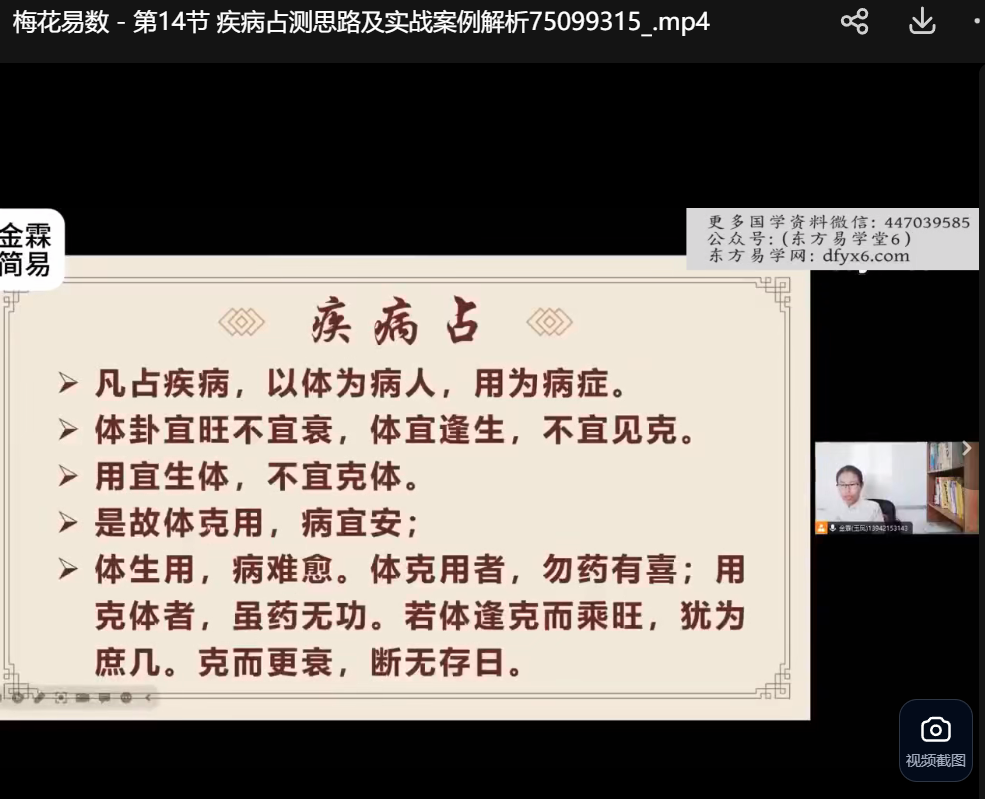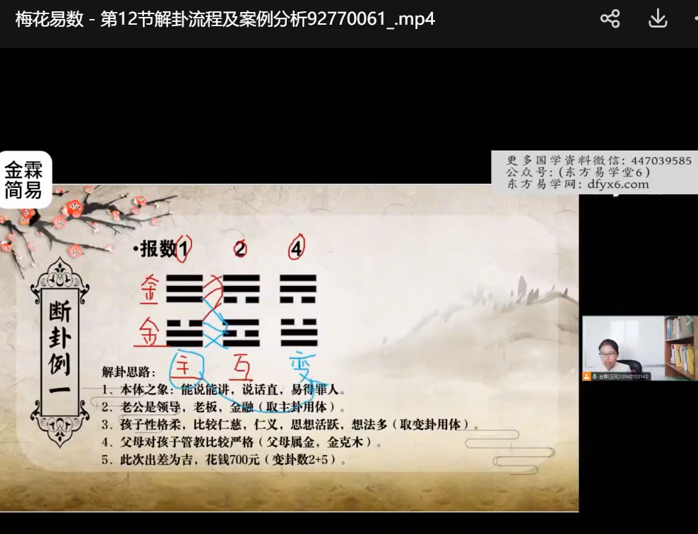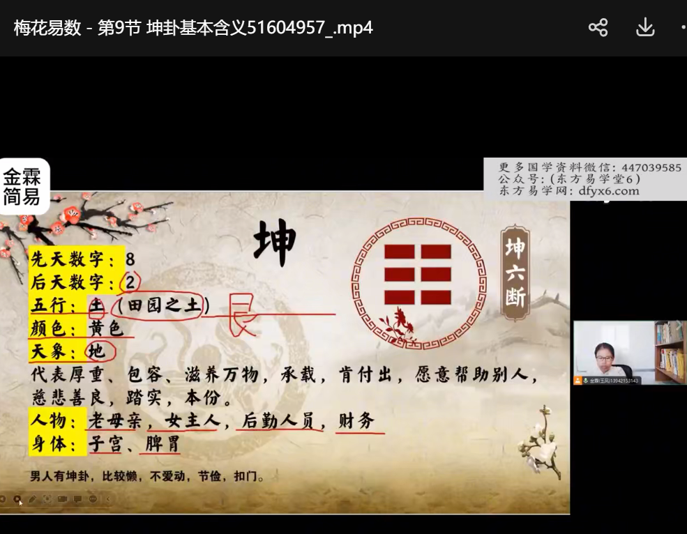 金霖老师梅花易数课程视频34集,0基础讲解梅花易数,理解各种占断思路,每集几分钟到十余分钟不等。